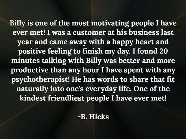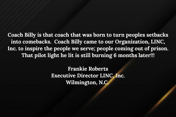 You will hear Billy say many things but there's one thing you will hear him say that resonates with him more than any, and that is, "Believe in the person you could be!" While being raised by a single parent mother and growing through the daily lack and limitations, although it was difficult, Billy held on to his belief. Being exposed to the turbulent life of his absent father, Billy held on to his belief. Then later in life desiring change but dealing with now his own issues, which resulted in legal problems and a brief period of homelessness, Billy had to hold on to his belief. The change he desired was tough and his belief was dimmed, but he held on to what little belief he had left.