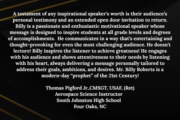 Billy's mission is to Motivate, Inspire, Inform and Transform lives by using his unique gifts of Teaching and exhortation as well as showcasing the value in the adversities he's been able to overcome .